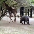 Cette girafe donne une bonne leçon à un rhinocéros. Hilarant !