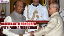 President Pranab Mukherjee conferment the Padma Awards to 112 people this year. Today, Tamil super star rajinikanth received the Padma Vibhushan Award at rashtrapathi bhavan, followed by Sania Mirza and ramoji rao received padma awards from President Pranab.
