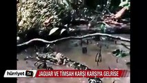 Brezilya’da jaguar, timsah avına çıktı. Avına yüzerek giden jaguar sessizce kıyıdaki timsahın arkasından gelerek böyle yakaladı. İşte o anlar…