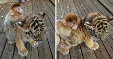 Comme vous le verrez dans la vidéo, et à en juger ses éclats de voix, le bout de chou a vraiment l'air de s'éclater avec son nouveau meilleur ami : un singe.