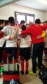 U15: C'est de la folie dans les vestiaires après leur belle victoire.