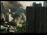 Danno alla struttura prima del crollo. Bent Propeller danno alla facciata sud fuoco e fumo danni sul tetto lobby car melted street fire