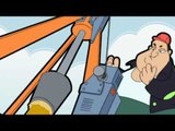 Mr Bean uses egg boxes to sound proof his home from the building noise outside. When they start to use a pile driver the egg boxes fall off and the house starts