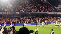 Sonny Bradley applauds the Luton Town supporters