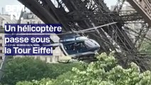 Paris : un hélicoptère vole sous la tour Eiffel