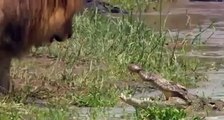 Aslan heryerde Aslan. Kükreyişi karşısında Timsah.İzleyin
