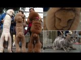 A British artist's depictions of hedges and bushes stylised to look like a cat have gone viral on the Internet.The "Topiary Cat" series, by Richard Saunders, shows a giant, green cat in natural settings. Traditional English gardens are a recurring backdrop for the animal.Saunders made his first Topiary Cat in 2011 but his later works have been shared widely. Saunders said one of those recent images, depicting the feline drinking from a lake, was viewed at least three million times on Facebook.The creations are made from photographs of his beloved Russian Blue cat, Tolly, who died in February. Saunders said each new work can take up to three days to complete using Adobe Photoshop software.