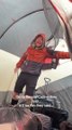 The video, filmed in Hoxton, London, UK this morning, shows the bird trying to get its beak on the food, but it keeps popping out of its mouth.