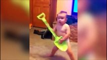 Ce bébé est un futur guitariste de metal, c'est certain! Headbang....