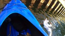 A funny video has emerged of a kayaker being pulled overboard by a red snapper he is trying to fish.