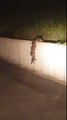 Chris Williams, un officier de police de Camdenton, dans l'État du Missouri, a filmé le travail d'équipe d'une maman raton laveur et ses petits pour franchir un mur. La maman se penche dans le vide pour attraper son petit resté au pied du mur tandis que le second petit retient sa maman en lui tenant les pattes arrière. Une jolie preuve d'intelligence !