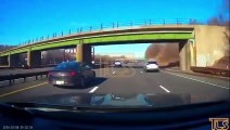 Insane driver passes on freeway's shoulder and the car flips NINE times