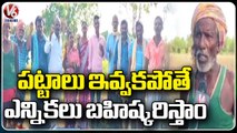 Farmers Protest For To Distribute Land Documents At Mecharajapally _ Mahabubabad _ V6 News (2)