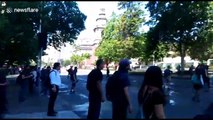 ABC15 cameras captured protestors throwing objects at Phoenix police officers during an anti police brutality rally Friday night.