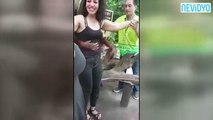 Kadının göğüslerine dokunup taciz eden arsız maymun…