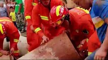 Heartwarming footage has emerged from China of firefighters rescuing a pregnant buffalo trapped in a well.
