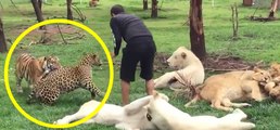 Un tigre sauve son dresseur d'une attaque de léopards