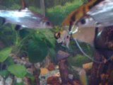 Couple de scalaire qui prépare leur support de ponte sous l'oeil méfiant des pelmatos et de leurs petits.Petite aparition de mon pleco (27cm) ...à suivre...