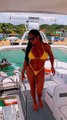 Maripily calentando las redes desde la hermosa playa para las redes