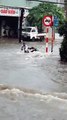 Anh chàng bất lực bị nước cuốn trôi cả người và xe ở TP.HCM