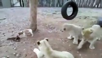 Un perro de raza Jack Russell terrier se defiendió de tres leones que buscaban arrebatarle su comida, el can logró morder a uno de los felinos para luego huir. Video original de Andre Van Rooyen