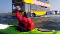 L'homme est arrêté pour sauver le pauvre animal. => http://www.oekais.com/fr/un-automobiliste-sauve-un-chaton-d-une-route-inondee.html