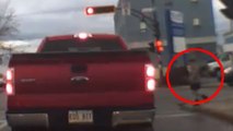 Un homme inconscient traverse un passage à niveau alors que les barrières de sécurité sont baissées. Le train arrive à grande vitesse et le frôle !