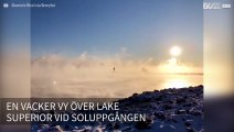 Magisk morgondimma över en sjö i USA