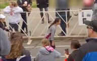 Madeline Adam de Boston College, a été aidée par Evie Tate de Clemson et Rachel Pease de Lousville pour finir une course