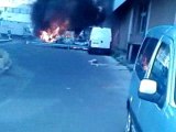 Camion de la poste qui brule au sanite