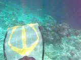 Durant une plongée de nuit aux Maldives, une tortue utilise la lumière des torches des plongeurs pour trouver, attraper et dévorer des poissons (Balistes à dent rouge) endormis dans leurs trous. Normalement, cette espèce de tortue dort la nuit !!!