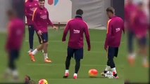 Lionel Messi jokes with Luis Suarez in FC Barcelona Training
