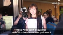 Hong Kong's leader says he will "fully implement" a ruling by Beijing which effectively bars two elected pro-independence lawmakers from the city's legislature after they deliberately misread their oaths of office.