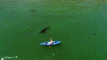 Ce kayakiste est suivi par un grand requin blanc à Monterey Bay