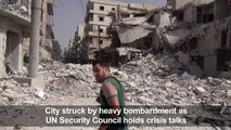 More than 80 people killed and dozens wounded as Syrian jets continue striking rebel-held parts of Aleppo province.