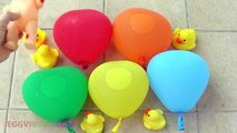 Learn Colors with Apple Color Wet Balloons Collection and enjoy water balloons! Also open a Kinder chocolate surprise egg and sing Finger Family & Five Little Ducks Went Out One Day Nursery Rhymes together. This video is a compilation with candy M&Ms balloons with Baby Doll and Duck.\r