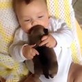 Ce bébé adore faire des bisous à son chiot. Trop cute !