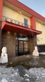 The video, shot on Monday, shows a torrent of water gushing through a street and water covering the roads in the area.