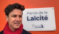Interview d'Armand Rivière, maire de Pézenas lors de l'inauguration du parvis de la Laicité