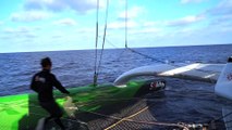 La remontée est tonique, l'océan est fidèle à sa réputation. Thomas nous envoie une belle carte postale : 30 à 40 noeuds de vent, une mer hachée... Des conditions difficiles mais un paysage "sublimement beau". Bonus !