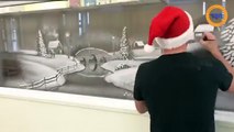 Un artiste spécialisé dans les peintures en fausse neige sur les vitrines