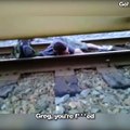 Ce taré se couche sous un train... Dingue!