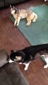 2 husky petent un cable dès qu'ils entendent d'autres chiens