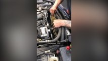 Imprudente mecánico instaló un ventilador en un auto mientras estaba encendido