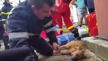 A Romanian firefighter was able to save a dog's life by performing CPR. A call was made to the firefighters department to save a 51 year old man and his dog that were surrounded by a blaze. As they rushed through to their rescue, the man was sent to the hospital while the dog was laying down on the sidewalk, barely breathing.