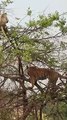 Leopard chasing down a monkey family in a tree, big battle King Lion vs giraffe