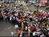 Ganesha Idols pass through busy streets with hundreds of devotees!!
