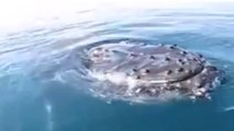 Un homme en Wakeboard tiré par un bateau essaie de pêcher des poissons ! En effet, on aperçoit pleins de poissons sauter à la surface de l'eau ! Equipé d'une épuisette, il tente d'en attraper le plus possible !