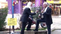 Kadınlara çiçek verip özür dileyen adam ağlattı