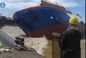 La mise à l’eau d’un gros bateau ne se passe pas comme prévu